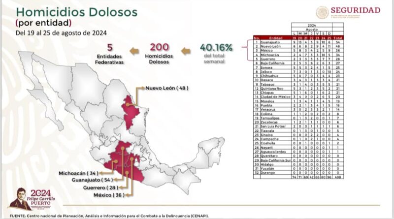 Leer másXalapa, Veracruz, 28/08/24 En el corte semanal de la incidencia de homicidios, correspondiente al periodo del 19 al 25 de