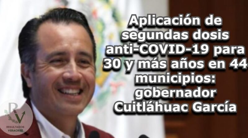 Aplicación de segundas dosis anti-COVID-19 para 30 y más años en 44 municipios: gobernador Cuitláhuac García