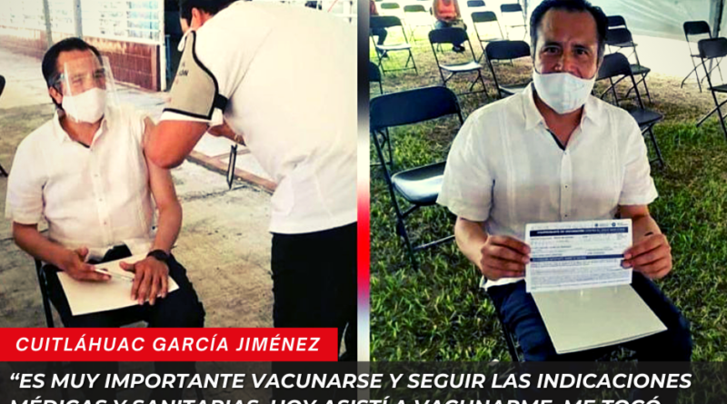 Xalapa, Ver., 20/07/21.- Esta tarde, el gobernador Cuitláhuac García Jiménez recibió la primera dosis de la vacuna contra COVID-19 de la farmacéutica SINOVAC, tal como lo había anunciado, dentro del rango correspondiente a las personas de 30 a 39 años de edad.