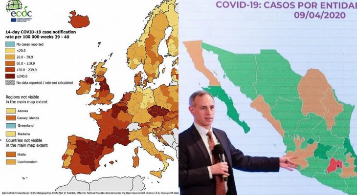 De acuerdo con el medio DW en español, Los ministros de la UE decidieron dividirla en zonas verdes, naranjas y rojas, aunque también existe el color gris para las regiones de las que no hay suficientes datos disponibles.
