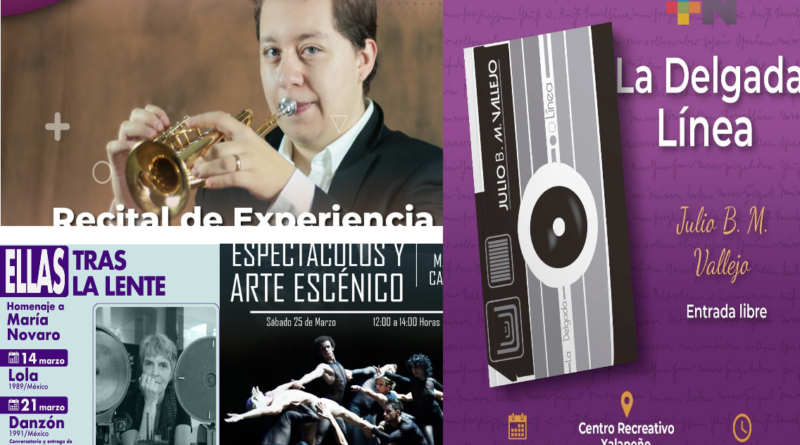 El miércoles 22 de marzo a las 19:00 horas, en el teatro J.J. Herrera se presenta el Ballet Folklórico de la UV con el programa “Su Majestad el Danzón”; ese mismo día, pero en el Centro Recreativo Xalapeño (CRX), toca el turno para la presentación del libro: “La Delgada Línea”, a las 18:00 horas.