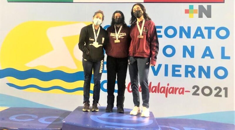 Veracruz, Ver.- La delegación veracruzana de natación que participa en el Campeonato Nacional de Invierno Curso Corto 2021 en Zapopan, Jalisco, continúa acumulando medallas y en la segunda jornada de Juveniles, conquistaron un oro, dos platas y dos más de bronce.
