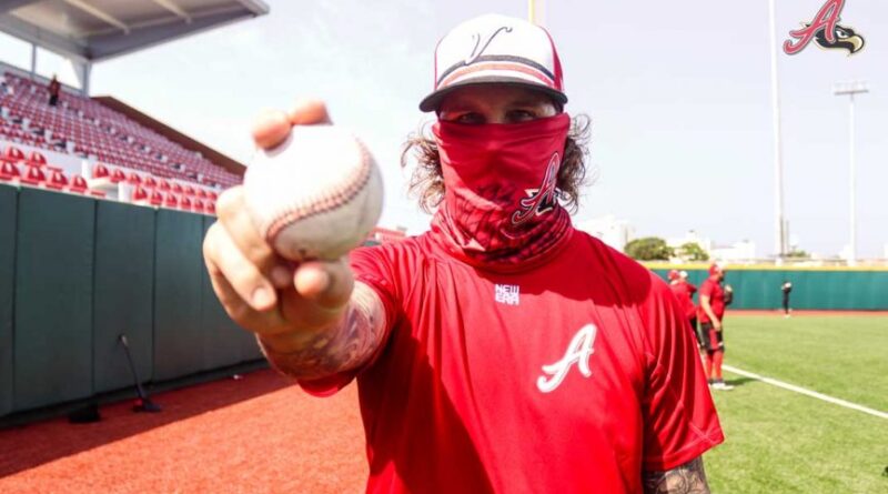 El pitcher sudafricano, Dylan “Tiburón” Unsworth, con El Águila de Veracruz.
