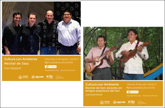 | El proyecto de difusión cultural virtual Cultura con Ambiente que impulsa el Instituto Veracruzano de la Cultura mediante la página de Facebook @CasasdelaCulturaIVEC, brindará durante el primer fin de semana de agosto una variada oferta artística, a partir de las 20:00 horas. Las actividades iniciarán el sábado 1 de agosto, con la presentación del músico e investigador Andrés Moreno Nájera, quien ofrecerá una charla ilustrada sobre el son jarocho, tema que aborda como músico y como escritor. De manera amena, el líder del destacado grupo Los Cultivadores del Son de San Andrés Tuxtla ejemplificará, acompañado de sus instrumentos, las peculiaridades de la música tradicional de su región. Autor de diversas compilaciones en torno a la música tradicional, así como de los rituales y las leyendas asociadas a los fandangos tradicionales, también es un destacado impulsor de los saberes musicales (instrumentos, afinaciones y repertorio) que las generaciones anteriores han heredado a la población actual de los Tuxtlas. El domingo 2 de agosto, toca el turno a Jazz Port, grupo de jazz conformado por músicos veracruzanos con amplia trayectoria profesional. Se ha presentado en diversos foros y festivales internacionales tocando jazz standards, música popular y temas originales principalmente; además de estilos de fusión, que van desde el latin jazz, swing, funk, bolero y hasta música folclórica. El grupo está integrado por Alejandro Cantú en la guitarra, Enrique Guerrero en el piano, Manuel Durán en el bajo y Aldo Cabrera en la batería. Todos ellos radican en el puerto de Veracruz, desde donde han logrado proyectar su música, con una propuesta que pretende acercarse a todos los públicos. Con estas recomendaciones, el IVEC ofrece una muestra del talento veracruzano y de la riqueza de nuestra cultura, en una cita ya tradicional durante los fines de semana a través de la página de Facebook @CasasdelaCulturaIVEC. Te invitamos a descubrir una gran variedad de contenidos programados en la página web www.ivec.gob.mx. Durante el verano, vive la Cultura con Ambiente. |