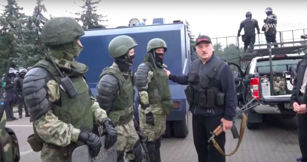 Con chaleco antibalas y un rifle, Lukashenko “vigila” protesta que reclama su salida