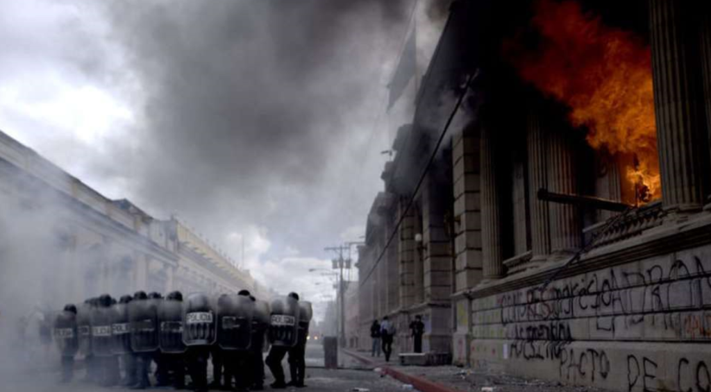 La quema de algunas de las oficinas obligó al Parlamento unicameral a sesionar temporalmente en el Centro Cultural Miguel Ángel Asturias, en Ciudad de Guatemala.