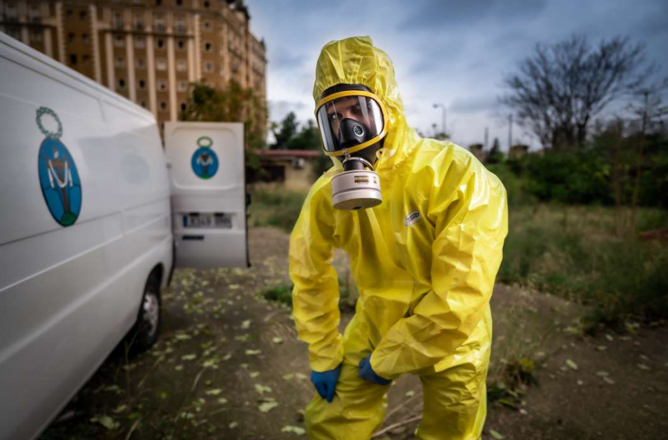 Eso es el pasado. Lo que les ha tocado vivir en el presente es una pandemia. En marzo se pusieron al servicio de los hospitales para realizar el traslado desde los centros sanitarios al anatómico forense o al cementerio, algo que en general no entra dentro de sus competencias. “En febrero, cuando vimos lo que se avecinaba, empezamos a abastecernos de equipos de protección”, indica Navarro. Adquirieron trajes NBQ (los de más alta protección) y mascarillas integrales con respiradores, que llevan con botas de agua y doble guante. También hicieron un curso con la Guardia Civil para aprender a quitarse el equipamiento sin contagiarse.