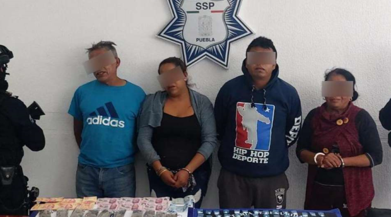 PUEBLA.- Karina H., Alfredo H., María C., y José Alfredo H., hermana, hermano, madre y padre respectivamente de Liliana H., quien se autodenomina como “La Reina del Sur”, fueron detenidos por agentes de la Policía Estatal en la junta auxiliar de San Francisco Totimehuacan en posesión de aparentes drogas. Los cuatro serían los principales distribuidores de estupefacientes en el sur de la capital.