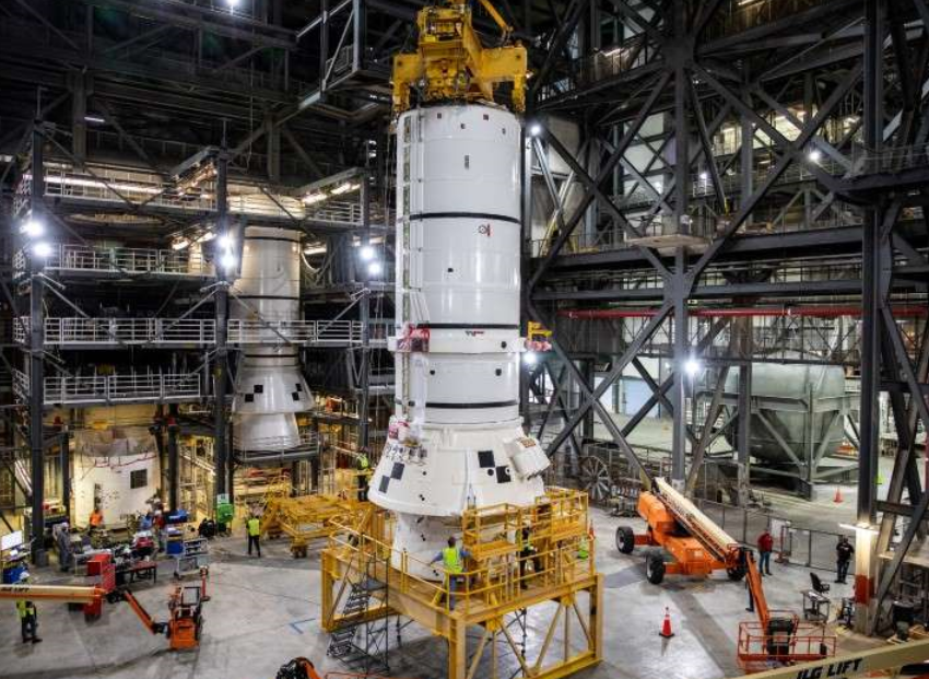 La NASA ha iniciado la integración de su nuevo cohete pesado SLS (Space Launch System) con el que la cápsula Orion de la misión Artemisa 1 volará hasta la luna el siguiente año.