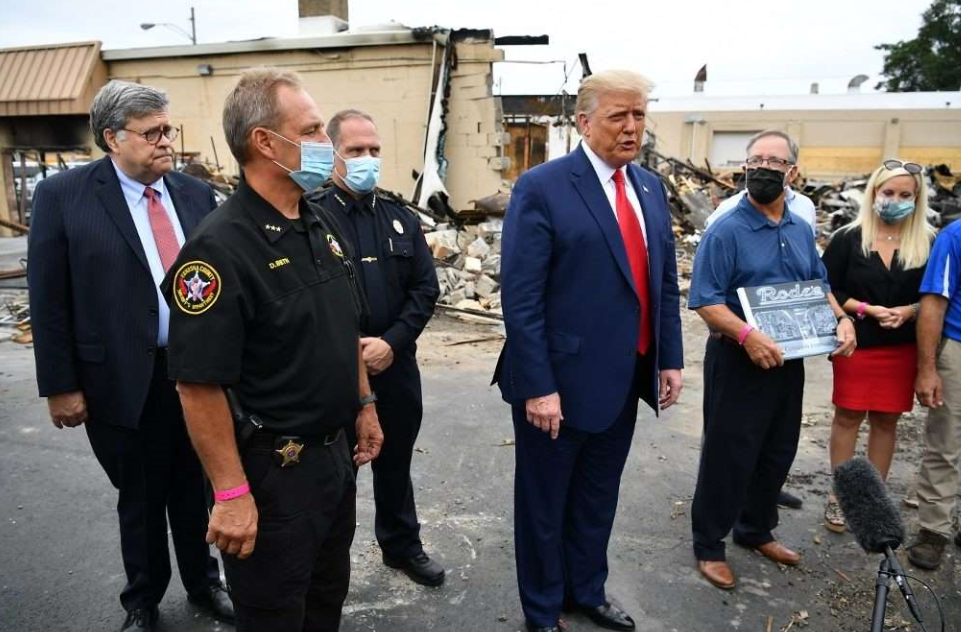 El presidente Donald Trump, calificó este martes de “terrorismo doméstico” las protestas contra el racismo y la policía tras llegar a Kenosha, foco de manifestaciones, disturbios y choques con grupos armados tras un nuevo caso de brutalidad contra un negro.