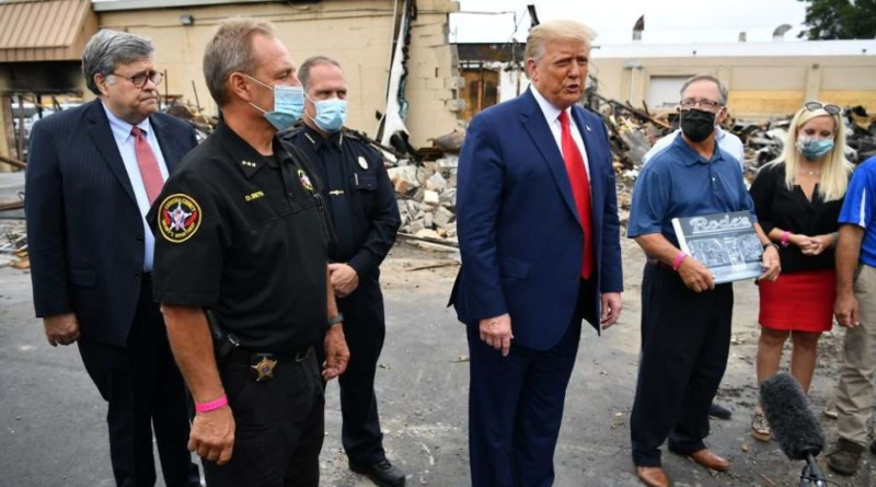 El presidente Donald Trump, calificó este martes de “terrorismo doméstico” las protestas contra el racismo y la policía tras llegar a Kenosha, foco de manifestaciones, disturbios y choques con grupos armados tras un nuevo caso de brutalidad contra un negro.