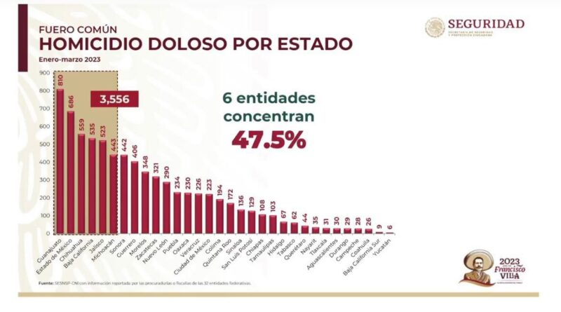 De acuerdo con el Sistema Nacional de Seguridad Pública, con información proporcionada por las fiscalías y procuradurías estatales, seis entidades concentran un 47.5 de la incidencia total en el periodo enero-marzo 2023: https://bit.ly/3LcSv6J.