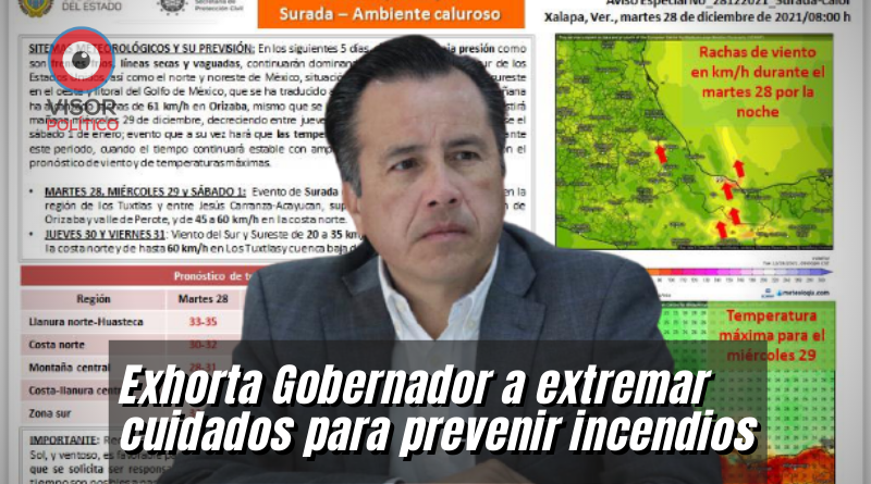 Xalapa, Ver., 28/12/21.- La Secretaría de Protección Civil informó que en las próximas horas se prevé un evento de surada que podría alcanzar rachas frescas a fuertes en varios puntos de la entidad, lo cual apoyaría un ambiente caluroso y seco, siendo propicio para incendios forestales, pastizales y basureros.