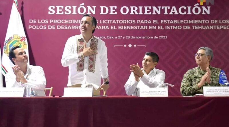 Durante la sesión informativa sobre los procesos licitatorios de Polos de Desarrollo para el Bienestar de Oaxaca, expresó su satisfacción al informar que la entidad ha alcanzado su objetivo, el 17 de noviembre, se anunciaron las empresas ganadoras de las licitaciones para la construcción de parques industriales en Coatzacoalcos I, Coatzacoalcos II, Texistepec y San Juan Evangelista.