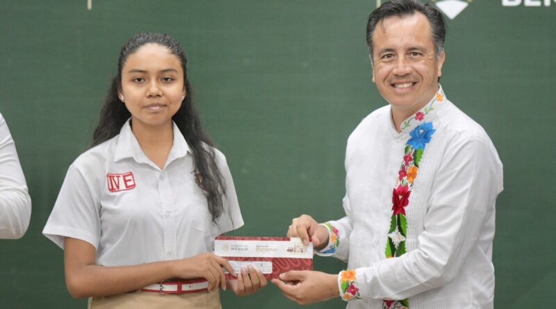Veracruz, Ver.- En cuatro años, el Gobierno Federal ha destinado 23 mil millones de pesos contribuyendo a la reducción de la deserción escolar a través de las Becas para el Bienestar Benito Juárez, destacó el gobernador Cuitláhuac García Jiménez durante el inicio de la entrega de tarjetas del Bienestar a 185 mil 445 estudiantes.