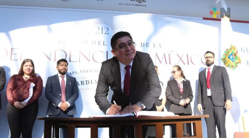 Xalapa, Ver.- Este miércoles, a cargo del Comité Ejecutivo Estatal de Morena (CEE), se montó la Guardia de Honor en el marco del 212 aniversario de la Independencia de México con una ofrenda floral ante el monumento al Padre de la Patria, Miguel Hidalgo y Costilla.