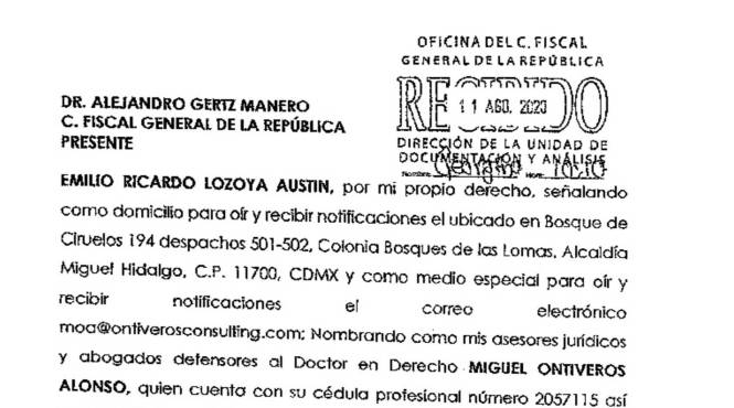 La FGR inició una carpeta de investigación por la difusión de la copia de la denuncia presentada por Emilio Lozoya, exdirector de Pemex. Mediante un comunicado, la FGR se deslindó de la filtración del documento a los medios de comunicación y afirmó que citará a quienes hayan tenido acceso a la copia.