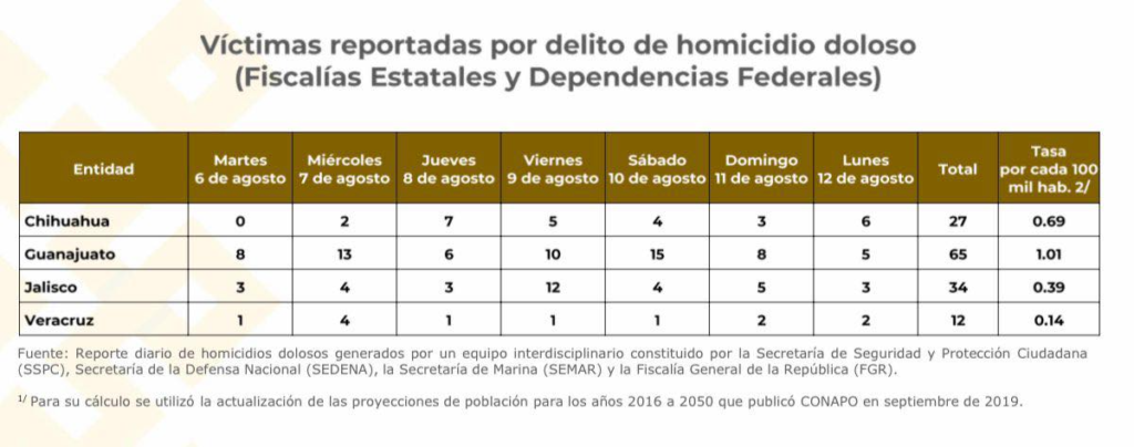 Guanajuato, con 5 veces más homicidios dolosos que Veracruz