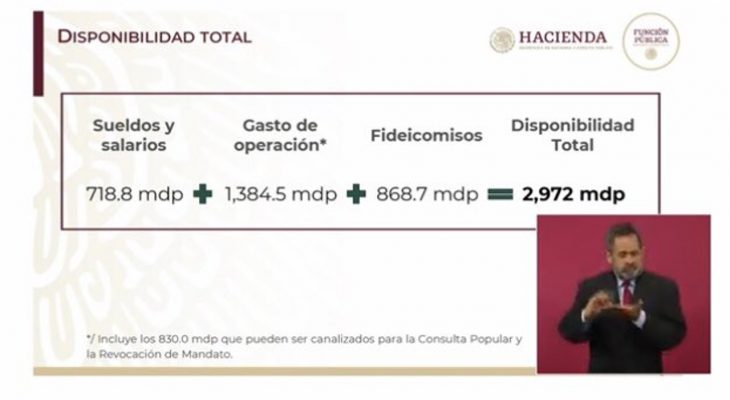 “El resultado de este ejercicio le daría al INE una disponibilidad de 2 mil 972 millones. En el día enviaremos está propuesta al INE de manera respetuosa para garantizar la realización del ejercicio de la revocación de mandato”, explicó Adán Augusto López Hernández, secretario de Gobernación.