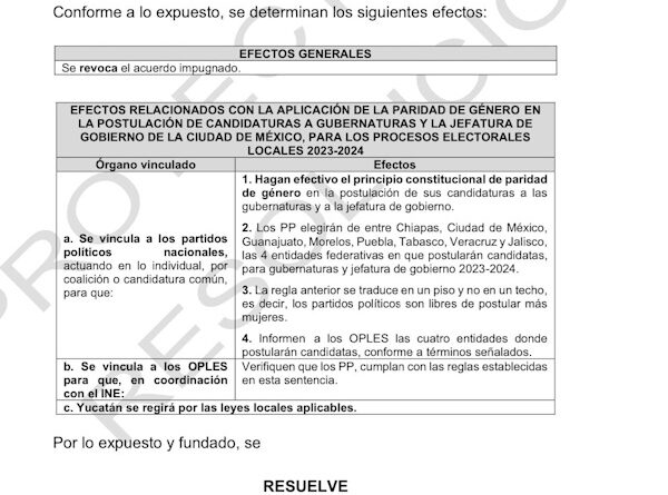 Gubernaturas a mujeres, y no cinco como determinó el INE.