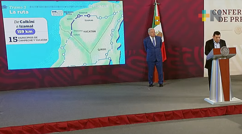 El tramo 3 del Tren Maya, de Calkiní, Campeche a Izamal, Yucatán, tiene 95.5 por ciento de vía terminada, es decir, sólo restan siete kilómetros para concluir los 159 kilómetros que contempla el trazo, informó el director general del Fondo Nacional de Fomento al Turismo, Javier May Rodríguez.