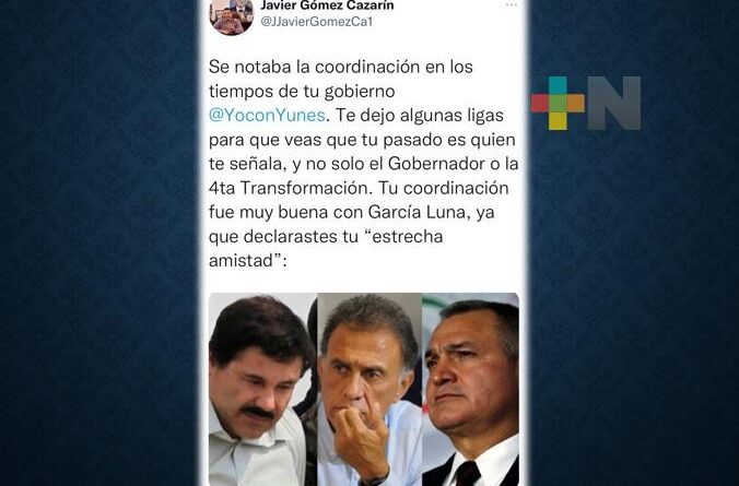 “Se notaba la coordinación en los tiempos de tu gobierno @YoconYunes. Te dejo algunas ligas para que veas que tu pasado es quien te señala, y no solo el Gobernador o la 4ta Transformación. Tu coordinación fue muy buena con García Luna, ya que declarastes tu “estrecha amistad”, reviro el diputado morenista a través de su cuenta de twiter.