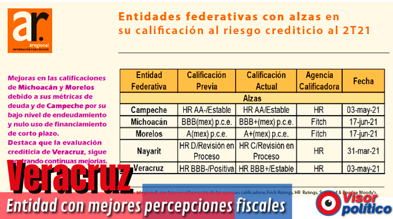 Ha sido precisamente esta última característica que ha llevado a Veracruz a mejorar su calificación crediticia, y al corte del 3 de mayo la institución financiera HR Ratona le daban una métrica de HR BBB+/Estable mostrando así continuas mejoras; la calificación previa era HR BBB-/Positiva