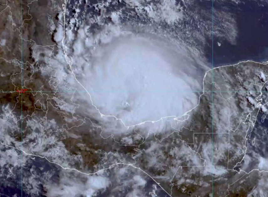 El sistema se encuentra sobre el Golfo de México con vientos máximos sostenidos de 195 kilómetros por hora y rachas de 240 kilómetros por hora.