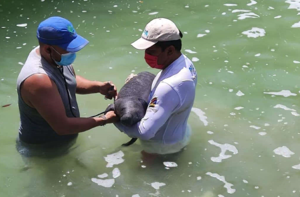 Luego de su cuidado esta fue trasladada al Centro de Atención y Rehabilitación de Mamíferos Acuáticos en Laguna Guerrero para que expertos estén pendiente de la cría de manatí.