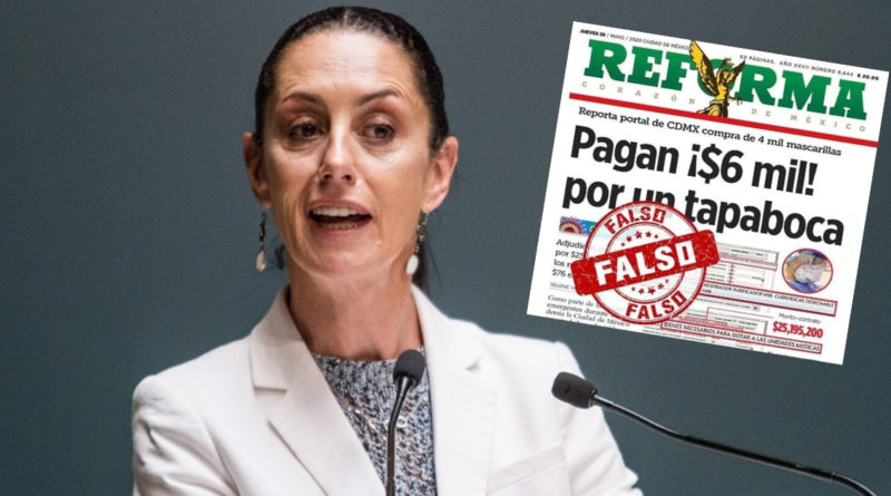 El impreso capitalino se inventó la noticia de que la administración de Sheinbaum  compró  un lote de cubrebocas a un precio de 6 mil pesos por unidad.