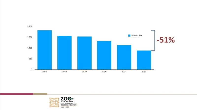 “En 2017, estábamos arriba de los 2 mil homicidios por año. En 2018, hay una ligera disminución. Pero donde se ve la acción de este gobierno, es los años que siguen (…) Repito, nos dejaron más de 2 mil homicidios por año y hoy estamos a 980 homicidios por año. Estamos incluso cumpliendo con la meta que nos propusimos en 2022: que era tener menos de tres homicidios en promedio al día, en promedio”.