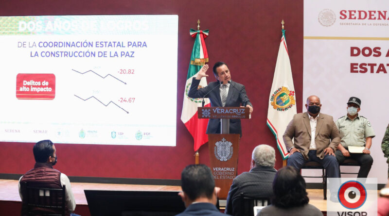 Xalapa, Ver. 09/11/2020.- A dos años del inicio de la Coordinación Estatal para la Construcción de la Paz los delitos de alto impacto disminuyeron considerablemente sobre todo el homicidio doloso en 14.27 por ciento, extorsión con 11.83 por ciento, secuestro en 61.03 por ciento y feminicidios en 21.11 por ciento.