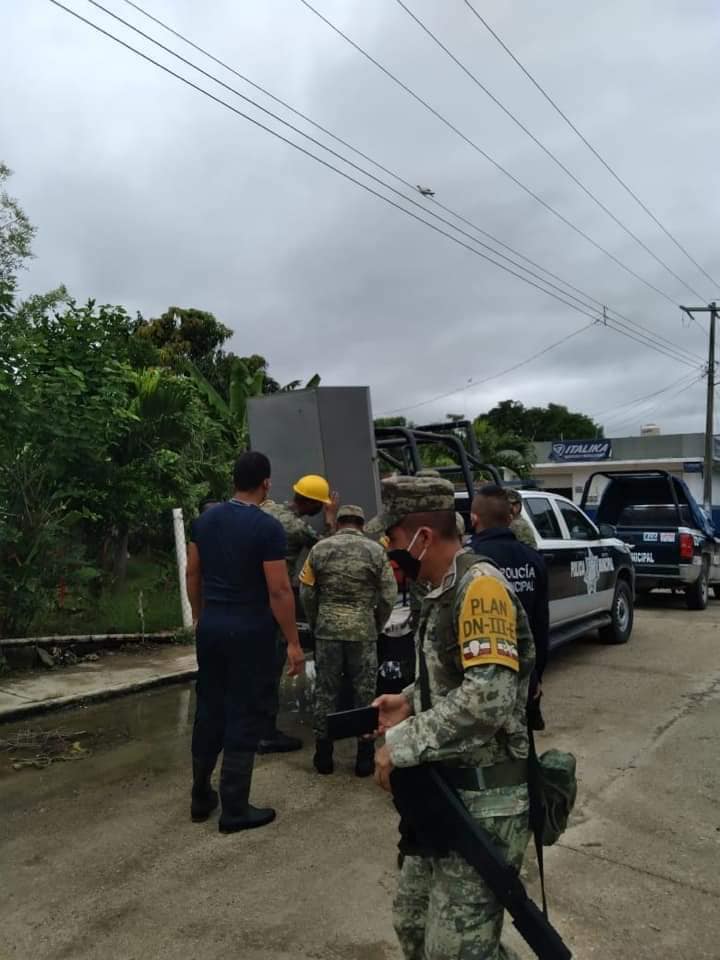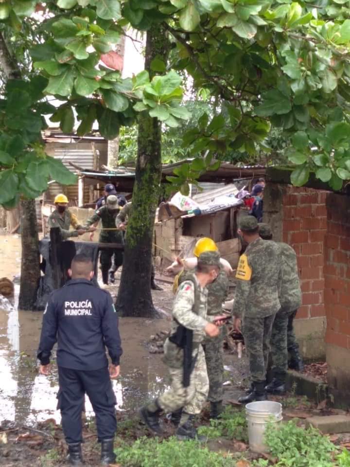 “Fuerzas coordinadas continúan atendiendo la emergencia en el municipio de Jesús Carranza #SeguimosTrabajando“.