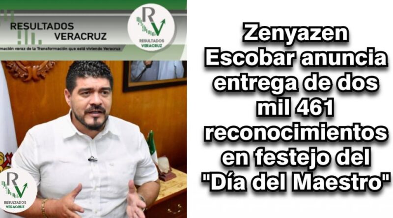 Zenyazen Escobar anuncia entrega de dos mil 461 reconocimientos en festejo del «Día del Maestro»